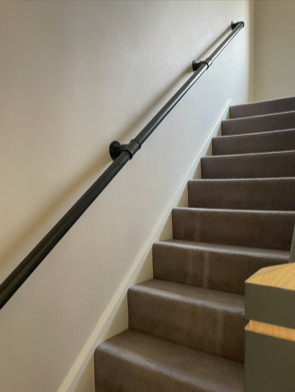 A collection of images showcasing staircase and railing designs, including under-stair storage and wooden railing.